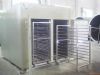 利用強(qiáng)制通風(fēng)作用,箱內(nèi)設(shè)有可調(diào)式分風(fēng)板,物料干燥均勻。熱源可采用蒸汽、熱水、電、遠(yuǎn)紅外,選擇廣泛。
