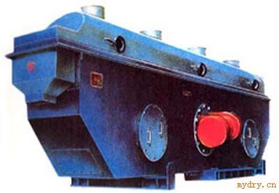 工作原理: 物料自進料口進入機內,在振動力作用下,物料沿水平流化床拋擲,向前連續運動,熱風向上穿過流化床同濕物料換熱后,濕空氣經旋風分離器除塵后由排風口排出,干燥物料由排料口排出。