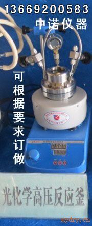 該產品用于進行化學、化工高壓合成或催化反應時,需要同時測定溫度、測定轉速及添加惰性氣體,平定壓力和實現在線取樣等要求的實驗環境。 技術亮點:1,,反應時實現觀察整個反應過程,2,觀察窗采用JGS2高透過率石英玻璃可實現高壓下在線光化學反應,應用實例: 光催化反應,Fischer-Tropsch反應,加氫反應,聚合反應,均相反應及二氧化碳超臨界反應等。 功能介紹及技術參數如下: ●設計容積(有效): 25ml, 50ml, 100ml,200ml,500ml, 1000ml,2000ml訂制。 ●工作溫度:300℃. 可定做 ●工作壓力:8MPa ●釜體材料:SU316L不銹鋼 ●閥門及連接材料:SU316L不銹鋼 ●反應器容器:內襯聚四氟乙烯活內套 ●光窗口材料:拋光JGS2紫外石英(耐壓窗口)或藍寶石鏡面 ●光照窗口直徑:40mm-60mm(可選) ●帶有溫控加熱裝置及均勻傳熱設計。 ●帶有氣體通入功能。 ●帶有工作溫度、壓力傳感器及顯示。 ●帶有磁力攪拌功能。 ●帶有自動泄壓保護 ●可選配外保護箱體 ●可進行氣相、液相樣品檢測 可選配光照單元:配合PLS-SXE300C/300CUV,或XPS300或XPS300UV(具有TSCS功能,可長時間保證光輸出穩定性)使用。可選配附件:紫外光直接輸出單元光纖輸出單元 外置透鏡匯聚單元 電源:220V,50HZ,保溫層:采用硅酸鋁棉真空定型環保保溫體,絕緣層:采用無堿玻璃纖維,絕緣系數:相對濕度≤35%時≥500兆.工作時間:單次連續工作96小時. ◆閥門管件為美標標準,接口均為標準配置。球閥可與充惰性氣體瓶連接,進行惰性保護實驗反應,實現反應物不與空氣直接接觸。