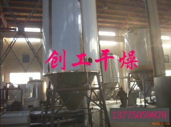 | 蛋白專用噴霧干燥設備-常州市創工干燥設備工程有限公司 對于黏度較大的物料,一般的噴霧干燥器,通常的解決辦法就是降低含固量,降低黏度,粘壁吸潮。專門針對黏度高的中藥浸膏、植物提取物(素)、調味品、骨湯、骨粉、食品香精、海鮮調味品、速溶咖啡、速溶飲料、酶制劑(木聚糖酶、水洗酶、拋光酶、蛋白酶)、血制品、催化劑ACR等漿狀物料直接干燥成粉末或顆粒固體研制成功的第三代噴霧干燥機已經在相關行業工業化成功應用!這是噴霧干燥界的一個跳躍式發展、一個技術創新的里程碑。 噴霧干燥機優點: 1、同樣的干燥能力(水份蒸發量),在相同的情況下第三代噴霧干燥機的塔體體積只有普通噴霧干燥塔體體積的1/10左右;設備占地面積與工程造價相對普通干燥器少了許多。 2、噴嘴、霧化器結構簡單、不易堵塞、便于維修更換,通過調節可以造出不同粒度的產品。 3、干燥與造粒是同時完成的,在霧化干燥的同時可以添加其他的輔料,一步合成顆粒。 4、干燥制粒一步完成,可以制成粒徑大小不同的孔裝球形顆粒,簡化了顆粒制劑的工藝和設備。 5、外表設計制造美觀,整體操作清洗更加便捷,具人性化考慮而設計。 工作原理 空氣先經過初效、中效過濾器,由加熱器加熱后進入干燥器頂部空氣分配器,熱空氣呈螺旋狀均勻地進入干燥室。料液經塔體頂部的高速離心霧化器,霧化成極細微的霧狀液珠,與熱空氣并流接觸在極短的時間內可干燥成成品。成品連續地由高效旋風分離器底部輸出,廢氣由引風機排出。 性能介紹 核心部件霧化器:全部采用高精度軸承(瑞典SKF軸承),空載振動值≤5μM負載振動值≤15μM 無故障運行:可達7000小時以上。 霧化器總進料量:5-15000kg/h。 電氣控制系統:分層次,分規模,各種控制方案滿足不同需求;經典邏輯方式;動態工藝流程模擬制;FX-DU/WIN-C專用軟件編程;PLC控制;組態監控;人機界面觸摸屏操作控制。 醫藥類干燥機可增設:振打、氣掃、冷卻夾套等裝置,管路全部符合GMP要求。 技術參數資料請登陸公司網站 空氣通過加熱器轉化為熱空氣,進入裝置在干燥室頂部的熱風分配器,然后均勻的進入干燥室,并呈螺旋狀轉動,同時將料液送至裝置在干燥室頂部的離心霧化器,使料液霧化成極小的霧化液滴,料液和熱空氣并流接觸,水份迅速蒸發,在極短的時間內干燥為成品。成品經干燥塔底部和旋風分離器排出,廢氣由風機抽出排空。 特點:干燥速度快,料液經霧化后,表面積大大增加,在熱風氣流中瞬間就可蒸發65%-98%的水份,完成干燥時間僅需5-15秒。特別適用于熱敏性物料的干燥,能保證物料色、香、味。 所得產品粒度均勻,流動性、速溶性良好,產品純度高,質量好。 操作簡單穩定,調節控制方便,容易實現自動化作業。 生產過程簡化,操作環境衛生條件優越,能避免干燥過程中的粉塵。 |