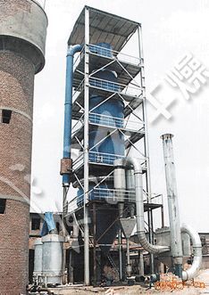 壓力噴霧干燥機工作過程為:料液通過隔膜泵高壓輸入,噴出霧狀液滴,然后同熱空氣并流下降,大部分粉粒由塔底排料口收集,廢氣及其微小粉末經旋風分離器分離,廢氣由抽風機排出,粉末由設在旋風分離器下的收粉筒收集,風機出口處還可裝備二級除塵裝置,回收率在96%-98%。