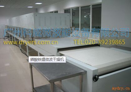 微波磷酸鐵鋰烘干機可以實現連續生產,只需要用電,不需要其它能源,能快速的將物料干燥到需要的水分,設備占地小,*,操作簡單;不需要預熱也沒有在停機后還有能源損耗。人工少,產品質量高。設備先進化程度高,是別的設備無法替代的高新技術產品。