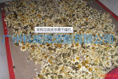 一般的熱風干燥過程中物料外部受熱,表面干燥,熱量向內傳遞,其方向與水分擴散傳遞的方向相反,影響了水分的向外蒸發。而微波是內部加熱,含水量高的部位升溫較快。因此在微波干燥過程中,水分由內層向外層的遷移速度快,干燥速度明顯快于熱風干燥。在茉莉花干燥中應用微波干燥具有以下優點:干燥速度快;產品質量好;由于茉莉花表面溫度不太高,葉綠素變化少,色澤綠翠而耐藏,香氣損失少,干燥均勻;同時由于水分蒸發速度快,容易形成多孔性,產品的復水性好,泡茶時內容物易溶出。