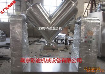 V型混合機概述: V型混合機系列產品為V型高效不對稱混合機,它適用于化工、食品、醫藥、飼料、陶瓷、冶金等行業的粉料或顆料狀物料的混和。該機結構合理、簡單、操作密閉,進出料方便(人工或真空加料),筒體采用不銹鋼材料制作,便于清洗。