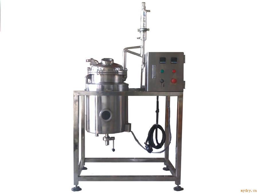 宇硯系列實驗型植物精油提取設(shè)備適用于中藥、保健品、生物制藥、化妝品、食品等行業(yè)對含有油脂成分的植物葉、花、草及動物性物料中常見油脂,芳香型油脂成分的隔水蒸餾提取工藝。本設(shè)植物揮發(fā)油的提取、收集。此設(shè)備、結(jié)構(gòu)精巧、是實驗室專用設(shè)備,非常適用于高校、研究所和企事業(yè)單位實驗室研發(fā)部門及制藥廠多品種、小批量生產(chǎn)使用。 設(shè)備特點: 1. 提取速度快,無毒、不易燃,使用安全,不污染環(huán)境。 2. 設(shè)備利用導熱油間接加熱,在保證清潔、安全、常溫的條件下能較快到達100C高溫。在鞏義允許的情況下,配合真空泵,引導蒸汽快速通過冷凝器,將易蒸發(fā)的油脂快速收集到油水分離器中。 3. 蒸餾罐容積:3~100升(可選) 4. 冷凝器、油水分離器采用高硼化玻璃材質(zhì),具備耐高溫不易碎特點。從精油分離到收集完全處于可視狀態(tài)。(也可用不銹鋼SUS304材質(zhì)) 5. 水汽蒸餾機組為特制的夾套式蒸餾籃結(jié)構(gòu)便于物料與溶液的分離,解決以往的出渣難、出料口堵塞等問題。 6. 冷凝器采用水滴型或短距回流型使蒸汽迅速冷卻,從而進一步更有效的提高精油收集率,提高生產(chǎn)效率,減少生產(chǎn)、實驗成本。 7. 設(shè)備整機操作有數(shù)字顯示控制系統(tǒng)和觸摸屏動態(tài)顯示控制系統(tǒng),可根據(jù)實際使用要求定制生產(chǎn)。 8. 宇硯小型精油提取設(shè)備可共水蒸餾、隔水蒸餾、常壓提取均可使用。 9. 設(shè)備整機全部采用0Cr18Ni9Ti;SUS304 2B 10. 宇硯精油提取設(shè)備配有液位控制、玻璃液位試鏡、帶燈視鏡、整個提取過程在可視狀態(tài)下進行。 11. 設(shè)備結(jié)構(gòu)緊湊,站地面積小,實際占地面積在1M2左右,生產(chǎn)操作符合GMP醫(yī)藥標準規(guī)范。 設(shè)備參數(shù):