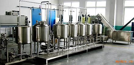 設備介紹: 制取果汁主要設備:果肉型(混濁汁):分選果生產線、洗果機、水果破碎機、軟化設備、多道打漿機、逆流多效濃縮設備、高溫瞬間滅菌機、大袋無菌灌裝封口機清汁型:分選果生產線、洗果機、水果破碎機、初酶解設備、榨汁機、前過濾設備、酶解澄清設備、超濾設備、多效濃縮設備、高溫瞬間滅菌機、大袋無菌灌裝封口機。