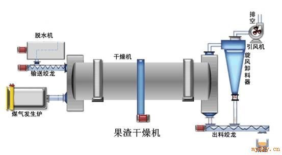 一、豆渣飼料加工工藝 豆渣(豆腐渣)是一種結合水、油性大的物料,水份不容易處理掉,針對這一特點,研制出豆渣(豆腐渣)脫水烘干成套設備。先將豆渣經過脫水機脫去大部分游離水份;然后含水55~60%的濕豆渣進入到豆渣烘干機內,在特制的帶打散裝置的干燥系統內進行快速干燥。整個烘干過程中熱能充分利用,豆渣受熱均勻,所以烘干出的豆渣色澤好,無糊料,且耗能低。 二、機械結構及工作原理 豆渣烘干機主要由供熱源、進料機、回轉滾筒、出料機、引風機、卸料器和配電柜構成;脫水后的濕豆渣進入烘干機后,在滾筒內均布的抄板翻動下,在烘干機內均勻分散與熱空氣充分接觸,加快了烘干傳熱﹑傳質。在烘干過程中,豆渣在帶有傾斜度的抄板和熱介質的作用下,至烘干機另一段星形卸料閥排出烘干成品。在方案設計當中、充分考慮到豆渣水分含量大、蛋白含量高、粘性大的特點,并采取了系列合理的技術和工藝來加以解決,以確保良好的烘干效果。 三、主要特點 1. 烘干機械化程度高,生產能力較大,可連續運轉。 2. 結構優良﹑簡單﹑物料通過筒體阻力運行平穩﹑操作方便。 3. 故障少﹑維護費用低﹑功耗低。 4. 產品烘干的均勻性好。 5. 豆渣烘干生產線采用了特殊的打散裝置,確保了烘干機的烘干效果。 6. 采用新穎獨特的密封裝置,并配以效果良好的保溫系統,有效的降低了烘干系統的煤耗 7. 整體系統密封性能好,并配有完善的除塵裝置,無粉塵外溢,操作環境好。 8. 整個烘干系統采用電氣集中控制,熱風溫度自動調節,自動化程度高,操作方便。 |