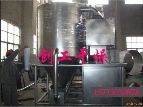 三、氨基酸干燥機特點: 干燥速度快,料液經霧化后表面積大大增加,在熱風氣流中,瞬間就可蒸發95%-98%的水份,完成干燥時間僅需5-35秒,特別適用于熱敏性物料的干燥。 由于干燥是在熱空氣中完成的,產品基本上保持與液滴相近似的球狀,具有良好的分散性,流動性和溶解性。操作簡單穩定,調節控制方便,容易實現自動化作業。 生產過程簡化,適宜連續控制生產含濕量40%-90%的液體,一次干燥成粉,減少粉碎篩選等工序,操作環境衛生條件優越,能避免干燥過程中的粉塵飛揚。 原料液可以是溶液,泥漿,乳濁液,懸浮液,糊狀物或融熔物,甚至是濾餅等均可處理。