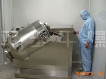 結構:該機由機座、傳動系統、電器控制系統、多向運動機構、混合筒等部件組成。與物料直接接觸的混合筒采用優質不銹鋼材料制造,桶體內外壁均經鏡面拋光。
