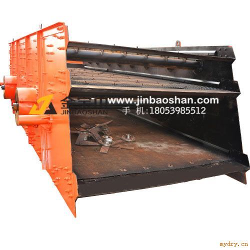 金寶山圓振動(dòng)篩簡(jiǎn)介: 金寶山Y(jié)Z系列圓振動(dòng)篩因其運(yùn)動(dòng)軌跡近似于圓,故簡(jiǎn)稱為圓振動(dòng)篩。圓振動(dòng)篩是一種多層數(shù)、高效新型振動(dòng)篩。圓振動(dòng)篩(圓振篩)采用筒體式偏心激振器塊調(diào)節(jié)振幅物料篩淌線長(zhǎng),篩分規(guī)格多。圓振篩廣泛應(yīng)用于礦山、建材、交通、能源、化工等行業(yè)的產(chǎn)品分級(jí)。 金寶山圓振動(dòng)篩工作原理: 金寶山Y(jié)Z系列圓振動(dòng)篩是由電動(dòng)機(jī)通過(guò)連軸器直接帶動(dòng)篩體兩側(cè)組成激振器運(yùn)轉(zhuǎn),兩組激振器在中間萬(wàn)向節(jié)連軸器的連接下同步做不等離心力旋轉(zhuǎn),篩體在激振器及支撐彈簧組共同作用下按近圓形軌跡實(shí)現(xiàn)全副振動(dòng),物料在激振拋射力的作用下不斷向前翻轉(zhuǎn)跳躍,小于篩孔的物料落入下層篩網(wǎng),逐級(jí)依次篩分,篩余成品物料由出料接斗接出。 金寶山圓振動(dòng)篩性能特點(diǎn): 1、采用偏心塊作為激振力,激振力強(qiáng),大小可調(diào)。 2、篩子橫梁和箱體采用高強(qiáng)度鉚接件鉚接,強(qiáng)度高。 3、篩箱側(cè)板力為鍋爐鋼板,強(qiáng)度高,耐沖擊力強(qiáng)。 4、采用小振幅,高頻率,大傾角結(jié)構(gòu),使該機(jī)篩分效率高,處理量大、壽命長(zhǎng)、耗電低、噪音小。 金寶山圓振動(dòng)篩規(guī)格與性能參數(shù)表: