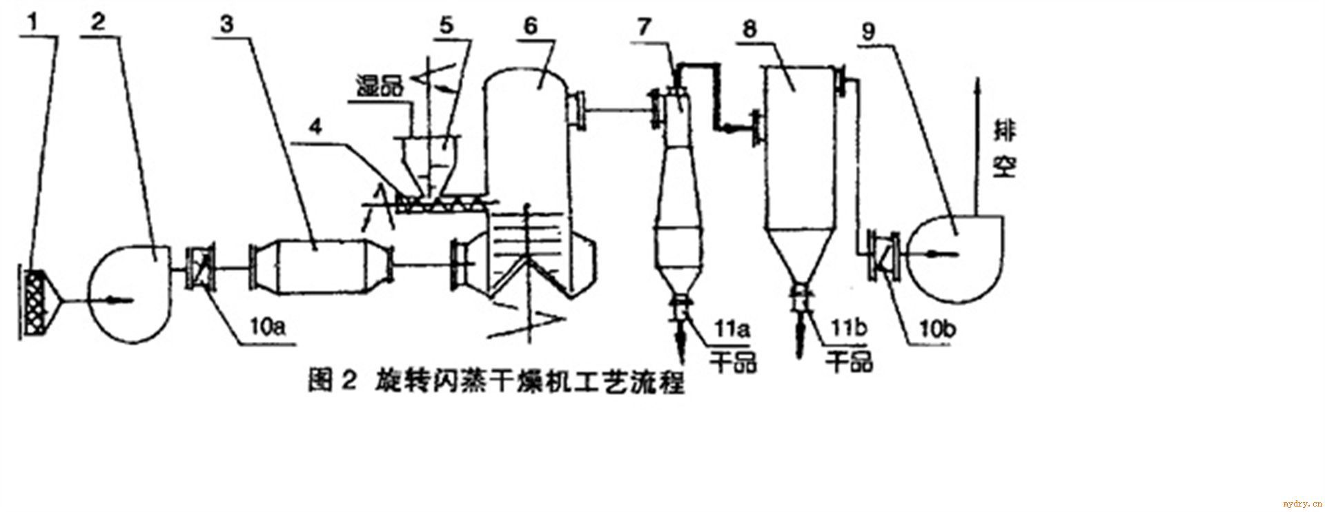 干燥設備選型及主要技術參數: 根據上述物料要求,選用XSZ-600型旋轉閃蒸干燥機進行連續式干燥作業.該機組主要技術參數如下(設備流程另見圖): 1、