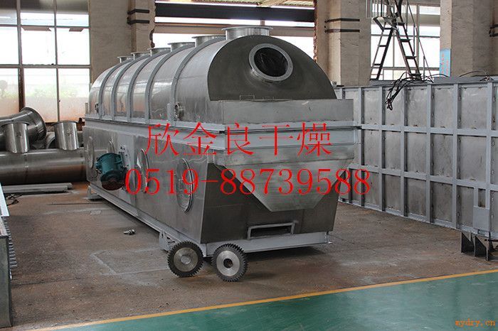 工作原理: 物料自進料口進入機內,在振動力作用下, 物料沿水平方向拋擲向前連續運動,熱風向上穿過流化床和濕物料換熱,濕空氣經旋風分離器除塵后由排風口排出,干燥物料由排料口排出。 設備特點: 1.物料受熱均勻,熱交換充分,干燥強度高,比普通干燥機節能30%左右。 |