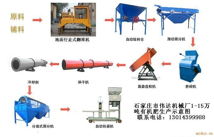 有機肥發酵設備使用于動物糞便、生活垃圾、污泥、農作物秸稈等有機固體物工業化的發酵處理,也可用于飼料發酵,該產品分直落塔式發酵設備和槽式翻拋發酵設備兩大系列產品; 槽式發酵設備采用地槽結構,可根據廠房結構設計一機多槽使用的發酵系列產品,具有操作簡單、發酵周期短、發酵充分、污染小、擴廣方便等特點 雞糞有機肥生產工藝流程—有機肥項目建設周期短、投資回報利潤高、市場風險小(有機肥一般至少5年保質期)、回收期短(一遇農忙,供不應求),市場潛力大(*地大物博,尤其是在河南、東北等農業大省,用量相當大),一般一年就可收回投資并當年產生盈利。 河北省藁城市偉達機械廠 電話一三零一四三九九九八八 有機肥生產工藝流程大致包括為:原料選配(雞糞等)→干燥滅菌→配料混合→制粒→冷卻篩選→計量封口→成品入庫。 而復雜一點的的雞糞有機肥生產工藝流程為:有機肥原料(動物糞便、生活垃圾、枯枝爛葉、沼渣、廢棄菌種等)發酵后進入半濕物料粉碎機進行粉碎,然后加入氮磷鉀等元素(純氮、五氧化二磷、氯化鉀、氯化銨等)使所含礦物元素達到所需標準,然后有攪拌機進行攪拌,再進入造粒機制顆粒,出來后烘干,通過篩分機篩分,合格產品進行包裝 ,不合格的返回造粒機進行造粒。 其中,原料的細度的合理搭配對于有機肥生產工藝流程至關重要。根據偉達公司多年的有機肥設備和有機肥生產工藝經驗,整個原料的細度應搭配如下*好:100—60目的原料約占30%—40%,60目至直徑1.00㎜的原料約占35%,直徑1.00—2.00㎜的小顆粒約占25%—30%,材料細度越高,粘性就越好,造粒后的顆粒表面光潔度也就越高。但是在生產過程中,超比例的高細度材料的使用,易出現因粘性過好造成顆粒過大,顆粒不規則等問題。 有機肥生產線成套設備配置介紹: 有機肥生產工藝流程與有機肥生產線設備配置息息相關,一般有機肥生產線成套設備主要由發酵系統、干燥系統、除臭除塵系統、粉碎系統、配料系統、混合系統、造粒系統、篩分系統和成品包裝系統組成。下面詳細說明有機肥生產工藝流程各環節系統的設備需求: 有機肥生產工藝流程的發酵系統由進料輸送機、生物除臭劑、混合攪拌機、專有升降式翻拋機及電氣自動控制系統等組成; 干燥系統的主要設備有皮帶輸送機、轉筒干燥機、冷卻機、引風機、熱風爐等; 除臭除塵系統由沉降室、除塵室等組成,河北偉達公司免費提供圖紙,免費指導用戶壘砌; 粉碎系統就包括有偉達公司的新型半濕物料粉碎機、LP鏈式粉碎機或籠式粉碎機、皮帶輸送機等; 配料系統包含設備有電子配料系統、圓盤喂料機、振動篩,一次可以配置6-8種原物料等; 混合系統有可選擇的臥式攪拌機或盤式攪拌機、振動篩,移動式皮帶輸送機等組成; 有機肥生產工藝流程的造粒系統需要用到造粒機設備,可選擇的造粒機設備有:復合肥對輥擠壓造粒機、圓盤造粒機、平膜造粒機、生物有機肥球形造粒機、有機肥專用造粒機、轉鼓造粒機、拋圓機、復合肥專用造粒機等; 篩分系統主要由滾筒篩分機來完成,可以設置一級篩分機、二級篩分機,使成品率更高,顆粒更好; 成品包裝系統一般包括電子定量包裝秤、料倉、自動縫包機等。這樣就可以實現有機肥生產線的全自動無間歇生產。 相配套的雞糞有機肥生產線設備配置的建設規模一般為年產3-10萬噸。要綜合考慮當地的資源、市場容量,市場覆蓋情況。 一投資規模及產品方案設計需要根據以下條件制訂:原料資源特點,當地土壤條件,當地種植結構與主要作物品種,工廠場地條件,生產的自動化程度等。 有機肥的特征介紹: 有機肥生產工藝流程中有機肥可以分為粉狀有機肥和粒狀有機肥。 其中,粉狀有機肥工藝比較簡單: 一. 檢測你的原材料(比如草木灰、糠醛渣、腐植酸等)成分,知道每種原料中準確的營養成分和營養成分比例對有機肥生產起著重要作用; 二. 一般的有機肥生產工藝流程要求達到使其氮磷鉀含量超過4%,有機質超過30%,滿足這樣的有機肥生產工藝流程就可以混勻、粉碎和包裝了。 另外,顆粒狀有機肥需要設備,滾筒造粒機、轉鼓造粒機、有機肥造粒機或者圓盤造粒或者對輥擠壓擠壓造粒等。有機肥生產工藝流程要求原料跟粉狀肥基本一樣,只是再需要添加粘結劑(膨潤土或者凹凸棒)后,成品的顆粒需要轉筒烘干機進行烘干。 還有一種有機肥,以牲畜糞便、生活垃圾、植物秸稈為主要原料,這種有機肥生產工藝流程大致為:原料干燥→粉碎→發酵→調配(與化肥及其他有機-無機物質混合,使氮+磷+鉀含量≥4%,有機質≥30%)→造粒(或不造粒,粉狀)→包裝。 假如原材料為腐植酸或泥炭,這種有機肥生產工藝里就沒有發酵,可不必發酵,其余步驟同上。 專業提供制造安裝有機肥生產線成套設備,有機肥生產流程、有機肥原料配比比例,有機肥配方等一條龍服務,讓您投資放心。石家莊偉達公司承諾:本公司所有售出產品,易損件除外電機保修一年!公司用*細心的服務鋪平您的創業之路! |
