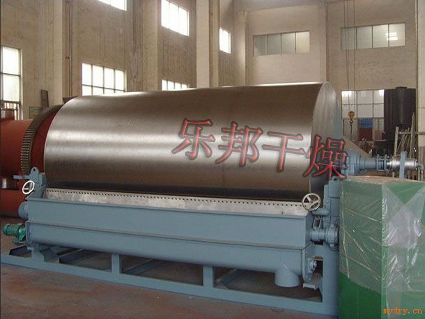 工作原理 滾筒干燥機是一種內加熱傳導型轉動連續干燥設備。旋轉的滾筒通過其下部料槽,粘附著一厚度的料膜,熱量通過管道輸送至滾筒內壁,傳導到滾筒外壁,再傳導給料膜,使料膜中的濕得到蒸發、脫濕、使含濕分的物料得到干燥。干燥好的物料被裝置在滾筒表面的刮刀鏟離滾筒,到置于刮刀下方的螺旋輸送器,通過螺旋輸送器將干物料集中、包裝。 性能特點 1;熱效率高。因滾筒干燥機傳熱機理屬熱傳導,傳熱方向在整個操作周期中保持一致,除蓋散熱和熱輻射損失外,其余熱量全部都用于筒料膜濕分的蒸發上,熱效率可達70%-80%。 2;操作彈性大,適用性廣。可調整滾筒干燥機的諸多干燥因素。如進料的濃度、涂料料膜的厚度、加熱介質的溫度、滾筒的轉動速度等,都可以改變滾筒干燥機的干燥效率,且諸多因素互無牽連。這給滾筒干燥操作帶來很大的方便,使之能適應多種物料的干燥和不同產量的要求。 3;干燥時間短。物料的干燥周期一般只有10-300秒,在適合于熱敏性物料。若將滾筒干燥機設置在真空器中,則可在減壓條件下運行。4干燥速率大。由于涂料抹于筒壁的料膜很薄,一般在0.3-1.5mm,且傳熱、傳質方向一致,料膜表面可保持20-70kg.H2O/m2.h的蒸發強。 本機安裝系根據總圖布置安裝,地面要平整,蒸氣管進口處要裝壓力表及安全閥,各蒸氣進口法蘭連接牢固。 適應物料 1;HG系列(單鼓·雙鼓)轉鼓滾筒刮板干燥機適用于化工、染料、制藥、食品、冶金等行業液體或較粘稠物料的干燥。