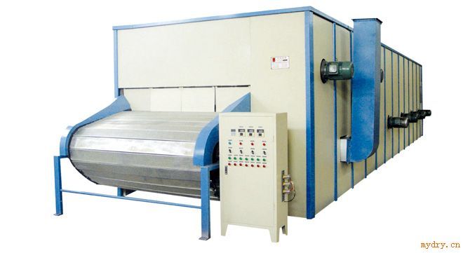工作原理:物料由加料器均勻地鋪在鏈板上,鏈板一般采用12-60目不銹鋼,由傳動裝置拖動在干燥機內移動。干燥機由若干單元組成,每一單元熱風獨立循環,部分尾氣由專門排濕風機排出,廢氣由調節閥控制,熱氣由下往上或由上往下穿過鋪滿物料的鏈板完成熱量與質量傳遞的進程,帶走物料水份。鏈板緩慢移動,運行速度可根據物料溫度自由調節,干燥后的成品連續落入收料器中。上下循環單元根據用戶需要可靈活配備,單元數量亦可根據需要選取。 經營范圍:本產品適用于羊毛、化纖、絹絲、藥棉、精棉、纖維素(CMC),甲基纖維素(MC)等物料的烘干。