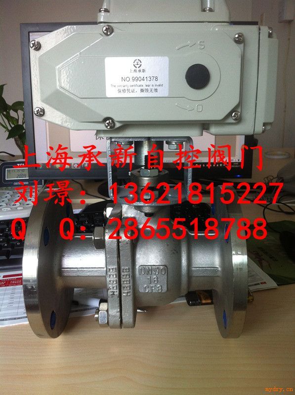 | ZAJQ941F-16C DN65電動法蘭球閥;(訂貨須知);。 產品概述 電動球閥是一種(球體)繞垂直于通道軸旋轉90o的閥門,其由回轉型角行程電子式電動執行器和O型閥結構組成,屬旋轉類型高性能調節或開關閥類,接受工業自動化控制(DCS,PLC系統)儀表來源的電流信號或電壓信號的輸入輸出,可實現對工藝管路中流體介質的比例調節或二位開關控制,從而達到對流體介質的流量,壓力,溫度,液位等參數的自動化控制. 產品特點 1.電動球閥流體阻力小,是所有閥類中流體阻力*小的一種,以AC220V,AC380V或DC24V電源電壓作動力,接受(4-20mA,0-10mA或1-5VDC)電流信號或電壓信號,即可控制運轉,以角行程輸出的扭矩轉動球體0~90o,就能完成啟閉動作或調節動作. 2.球芯通道平整光滑,不易沉積介質,可以進行管線式通球.結構簡單,重量輕,密封性能好. 特別適用于要求零泄漏率的場合. 3.采用HL型,3810R型,PSQ型角行程全電子式電動執行機構為O型球閥的驅動裝置,機電一體化的結構設計,具有機內伺服操作和開度信號位置反饋,位置指示,手動操作等功能,功能強,性能可靠,連線簡單,以AC220V或AC380V電源電壓作動力,直接接受統一標準信號(4-20mA DC,0-10mA DC或1-5V DC,0-10V DC), 將此轉變成與輸入信號相對應的位移,以角度位移(0~90o)運動,改變球芯的旋轉開度,因此一定的輸入信號對應一定的位置開度,實現比例調節動作.(二位開關式接受AC220V或AC380V電源電壓作動力,通過電機正反轉實現開關動作,并同時輸出開關閥位指示信號).是一種高精度,高性能,高可靠性類產品. 產品結構