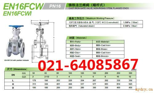 | EN16FCW/EN16FCWI鑄鐵法蘭暗桿閘閥日本KITZ北澤 |