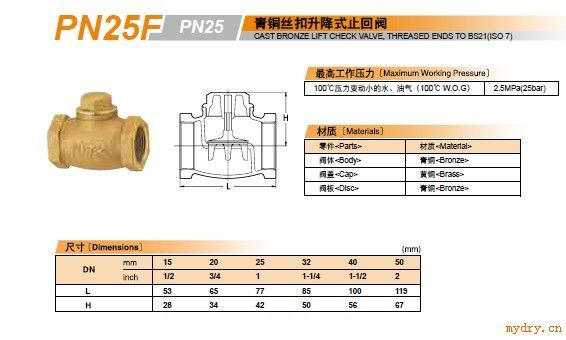 | 日本KITZ北澤PN25F青銅絲口升降式止回閥_PN25F升降式止回閥 |