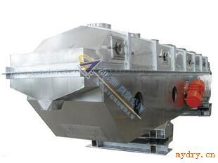 物料自進料進口進入機內,在振動力作用下,物料沿水平面流化床拋擲,向前連續運動,熱風向上穿過流化床同濕物料換熱后,濕空氣經旋風分離器除塵后由排風1:3排出.干燥物料由排料進口排出。