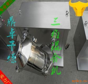 2、三維混合機結構特點 1) 機座: 三維混合機機座由型號鋼制成,外復不銹鋼面面析。機座結構合理,能有效的穩定整機,完全符合藥品的GMP要求。 2)驅動系統: 三維混合機的驅動系統由電機、傳動減速系統、變頻器、及控制系統組成傳動減速系統,設計簡練,傳動平穩可靠,變頻器能有效地緩沖重載啟動的慣性,還能準確的選擇停機時料筒的*佳位置,以方便進料或出料。