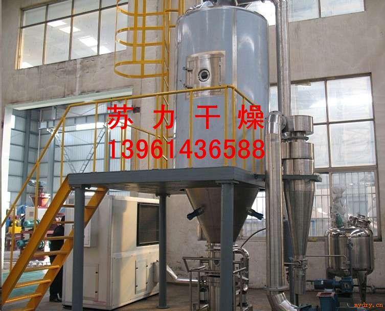 | 離心噴霧干燥設備、離心噴霧干燥機、高速離心噴霧干燥機,找常州蘇力,*的*隊伍,豐富的生產經驗,優質的服務理念和創新的技術工藝,深受新老客戶好評! 離心噴霧干燥設備的工作原理: 空氣經過濾和加熱,進入干燥器頂部空氣分配器,熱空氣呈螺旋狀均勻地進入干燥室。料液經塔體頂部的高速離心霧化器,(旋轉)噴霧成極細微的霧狀液珠,與熱空氣并流接觸在極短的時間內可干燥為成品。成品連續地由干燥塔底部和旋風分離器中輸出,廢氣由w風機排空。 離心噴霧干燥設備的特點: 1、干燥速度快、料液經霧化后表面積打打增加、在熱風氣流中,瞬間就可蒸發95%—98%的水份。完成干燥時間只需5-15秒,具有瞬時干燥特點。 2、特殊的分風裝置,降低了設備阻力,并有效提供了干燥器的處理風置。 3、生產過程簡化,適宜連續控制生產,含濕量40-90%的液體,一次干燥成粉,減少粉碎,篩選等工序提高產品純度。 4、物料在短時間內完成干燥過程,適應于熱敏性物料的干燥,能保持物料色、香、味。 5、產品分散性、流動性、溶解性良好,產品粒徑、松散度,水份在一定范圍內可調。 離心噴霧干燥設備的技術規格: