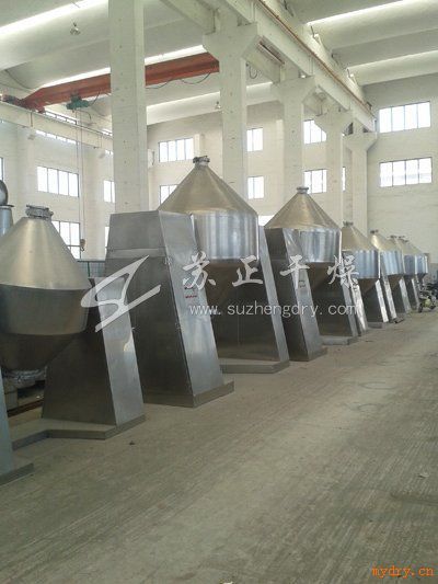 PV添加劑專用雙錐回轉真空干燥機是集混合,干燥于一體的新型干燥機。將冷凝器、真空泵與干燥機配套,組成真空干燥裝置。(如不需回收溶劑,冷凝器可不用)本機設計先進,內部結構簡單,清洗容易,物料能全部排出, 操作簡便,能降低勞動強度改善工作環境。同時因容器本身回轉時物料亦轉動但器壁上不積料,故傳熱系數較高,干燥速率大,不僅節約能源,而且物料干燥均勻充分,質量好。可廣泛應用于制藥、化工、食品、染料等行業物料的干燥。 符合“GMP”要求。