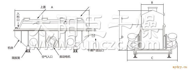 廠家供應復合肥專用流化床干燥機 廠家供應復合肥專用流化床干燥機工作原理 物料自進料進口進入機內,在振動力作用下,物料沿水平面流化床拋擲,向前連續運動,熱風向上穿過流化床同濕物料換熱后,濕空氣經旋風分離器除塵后由排風1:3排出.干燥物料由排料進口排出。 廠家供應復合肥專用流化床干燥機適應物料 適用于化工、制藥、食品、脫水蔬菜、糧食、礦產等行業的粉狀、顆粒狀物料的干燥、冷卻等作業。 如:檸檬酸、味精、硼砂、硫銨、復合肥、蘿l、絲、豆粕、酒糟、種子、礦渣、砂糖等。 廠家供應復合肥專用流化床干燥機性能特點 ◎振動源是采用振動電機驅動,運轉平穩,維修方便,噪音低,壽命長。 ◎流態化勻稱,無死空隙和吹穿現象,可以獲得均勻的干燥,冷卻制品。 ◎可調性好,適用面寬。料層厚度和在機內移動速度以及全振幅變更均可實現無級調節。 ◎對物料表面的損傷小.可用于易碎物料的干燥,物料顆粒不規則時亦不影響工作效果。 ◎采用全封閉式的結構.有效地防止了物料與空氣間交叉感染,作業環境清潔。 ◎機械效率與熱效率高,節能效果好,比一般干燥裝置可節能30一60%。 |