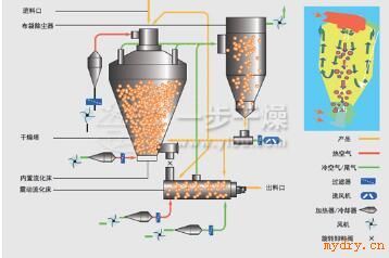 PYG系列頂出風壓力噴霧干燥機 操作方式 液體的進料可以是溶劑、懸浮液或乳蝕液,進料通過高壓泵輸送到位于塔體頂部 XX 分配器內的霧化器(噴槍)中。 壓力噴槍容液體霧化進入高速的千燥空氣流,產生霧化液滴由氣流帶動向下朝內盈流化床運行,同時被千燥成顆粒。 在顆粒進去流化床的同時,氣流反向向上運行,從干燥塔頂部被排出。 從排出空氣中分離出來的超細顆粒重新循環回到干燥塔塔體內。 流化床內顆粒的流化,細粉循環和干燥氣流內顆粒移動發生在一個比傳統干燥系統的粉塵密度更高的空氣環境中。克服顆粒表面的粘結問題,含水里高的顆粒可以被加工處理。 進入流化床的顆粒水分含.可以被控制在一定要求程度內,從而獲得較大顆粒和結構改變(附聚或制粒) 在有需要的時候,產品的*終干燥和冷卻可以在與內,流化床出口相連接的另一個外置流化床內進行。 特點 1.成品顆粒大小,水分含里調節范圍大; 2.設備總高度比原來的并流塔低; 3.節約能源,由于頂出風的回風室在塔體上部的高負壓區蒸發,降低了蒸發溫度,既節約了熱源,也節約了能 4.產品品質好,顆粒均勻,顆粒度調整范圍廣,顆粒色澤、沖調性能較好。 原理 食品:咖啡,乳制品,蛋制品,調味品,麥芽糊精,湯料,植物蛋白,醉母等。 化工:清洗劑,染料,化肥,無機鹽,殺蟲劑等。 |