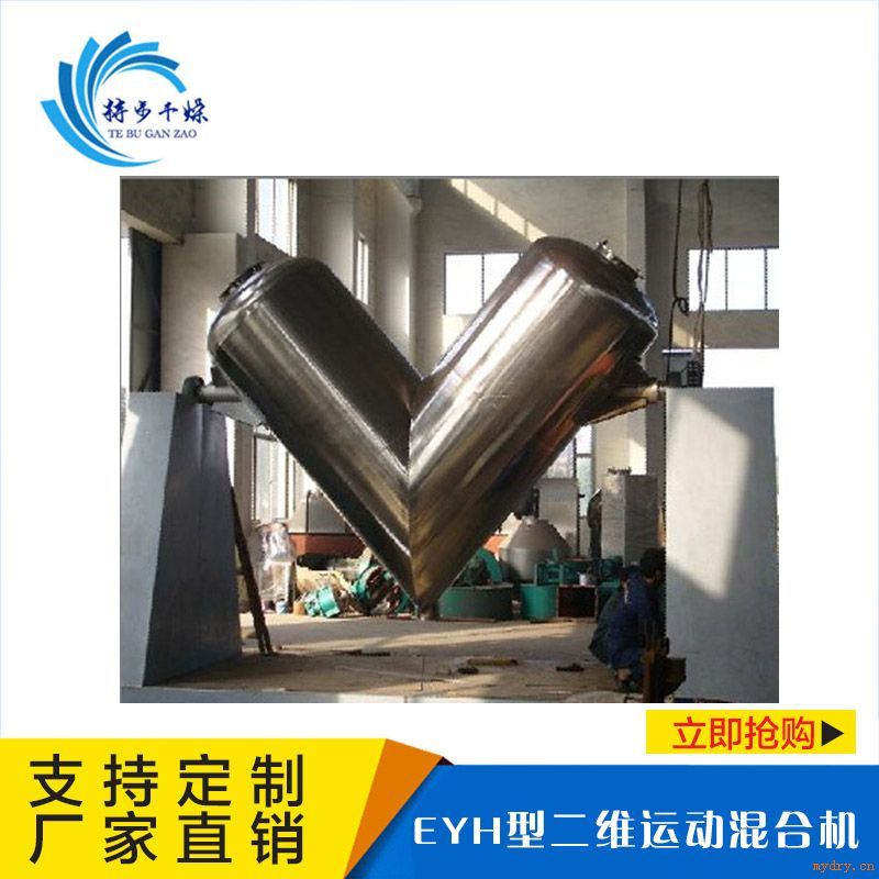 | 本機適用于制藥、化工、食品等行業兩種以上干粉狀、顆粒狀物料的混和。 該機混合筒體結構獨特,混合效率高,無死角,采用不銹鋼材料制作,內外壁均精細拋光處理,外形美觀,混合均勻,適用面寬,并能根據用戶的要求配套強制攪拌器,以適合較細的粉粒、塊狀、含有一定水份的物料混合之用。 |