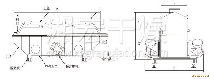 GZQ系列礦渣振動流化床干燥機廠家 GZQ系列礦渣振動流化床干燥機廠家工作原理 物料自進料進口進入機內,在振動力作用下,物料沿水平面流化床拋擲,向前連續運動,熱風向上穿過流化床同濕物料換熱后,濕空氣經旋風分離器除塵后由排風1:3排出.干燥物料由排料進口排出。 GZQ系列礦渣振動流化床干燥機廠家適應物料 適用于化工、制藥、食品、脫水蔬菜、糧食、礦產等行業的粉狀、顆粒狀物料的干燥、冷卻等作業。 如:檸檬酸、味精、硼砂、硫銨、復合肥、蘿l、絲、豆粕、酒糟、種子、礦渣、砂糖等。 GZQ系列礦渣振動流化床干燥機廠家性能特點 ◎振動源是采用振動電機驅動,運轉平穩,維修方便,噪音低,壽命長。 ◎流態化勻稱,無死空隙和吹穿現象,可以獲得均勻的干燥,冷卻制品。 ◎可調性好,適用面寬。料層厚度和在機內移動速度以及全振幅變更均可實現無級調節。 ◎對物料表面的損傷小.可用于易碎物料的干燥,物料顆粒不規則時亦不影響工作效果。 ◎采用全封閉式的結構.有效地防止了物料與空氣間交叉感染,作業環境清潔。 ◎機械效率與熱效率高,節能效果好,比一般干燥裝置可節能30一60%。 |