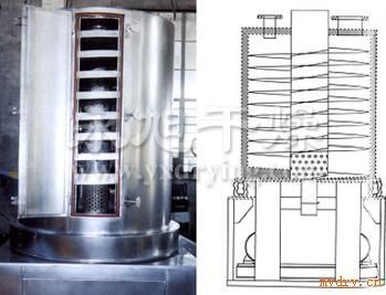 中藥丸劑螺旋振動干燥機 中藥丸劑干燥機概述 濕物料自頂部加料口進入螺旋床內,在周向激振力及重力的作用下,物料沿螺旋床自上而下作跳躍運動直至底層;同時,潔凈的熱風由螺旋床底部進入,與分布在床上的物料進行充分的傳熱和傳質后,由頂部排濕口排出。從而使物料達到了干燥的目的。
