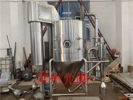 概述: 噴霧干燥設備是一種新型高效干燥工藝設備。它可使溶液、乳濁液、糊狀液及熱敏性物料經噴霧干燥。一般在幾秒鐘內蒸發水分轉變為符合生產要求的粉狀、顆粒狀空心球或圓粒狀產品,是制藥生物工程、化工等行業的理想干燥設備。 工作原理: 液料(經過過濾的液料)送入高速旋轉的離心霧化盤上,受旋轉盤離心力的作用料液在旋轉面上伸展為薄膜并不斷向邊緣運動,離開邊緣時便已霧化,經過霧化后的液滴(表面積大大增加)與熱空氣進行熱交換,在10-30秒內迅速完成干燥過程。 產品特點: 1、干燥速度快,一般只需5-15秒,具有瞬時干燥特點(瞬間可蒸發95%~98%的水份)。物料在短時間內完成干燥過程,適應于熱敏性物料的干燥,能保持物料色、香、味; 2、生產過程簡化,操作控制簡便,適應連續控制生產,含濕量40-90%的液體,一次干燥成粉,減少粉碎,篩選等工序,提高產品純度; 3、產品分散性、流動性、溶解性良好,產品粒徑、松散度、水分在一定范圍內可通過改變操作條件進行調整,控制和管理都很方便。 應用范圍: 1、化學工業:氯化鈉、堿性染料顏料、染料中間體、復合肥、甲醛硅酸、催化劑、白炭黑等。 2、塑料樹脂:AB、ABS乳液、尿醛樹脂、酚醛樹脂、密膠甲醛樹脂、聚乙烯、聚氯乙烯等。