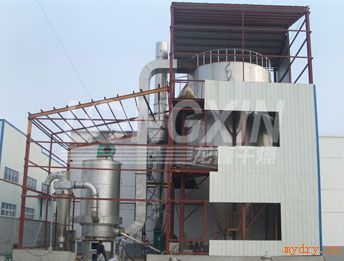 氧化鋁干燥機 設備描述: 干燥機為熱風循環、并流式、離心式霧化干燥機。干燥介質空氣通過初、中效空氣過濾器過濾,由加熱器加熱后,進入干燥器頂部空氣分配器,熱空氣呈螺旋狀均勻地進入干燥室。液體物料經過料液泵,輸送到塔體頂部的高速離心霧化器,在離心力作用下噴霧成極細微的霧狀液滴,與熱空氣并流接觸,在極短的時間內可干燥為成品。成品連續被干燥塔底部和旋風分離器收集,尾氣除塵后由引風機排空。