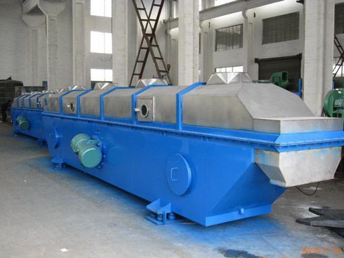 | 該機由振動電機拋擲產生激振力,物料在給定方向的激振力的作用下跳躍前進,同時床底輸入的熱風使物料處于流化狀態,物料顆粒與熱風充分接觸,從而達到干燥效果。物料從加料口進入,振槽上的物料與振槽下部通入的熱風正交接觸傳熱,濕空氣由引風機引出,干料由排料口排出。 |