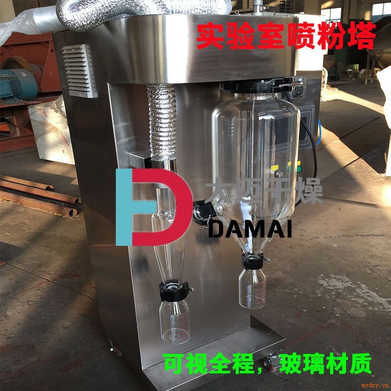 DM1500實驗室透明小型噴霧干燥機 DM1500實驗室透明小型噴霧干燥機:是常州大邁為高校和進行食品、制藥、生物工程、化工和材料等研究所和企業實驗室,從事新產品研發和生產微量顆粒粉末所設計和制造的。 實驗型噴霧干燥機應用范圍和領域:主要適用于院校、研究所和食品、生物、飲料、化工、材料、制藥等企業實驗室研發和生產微量顆粒粉末,對所有溶液如乳濁液、懸浮液具有廣泛適用性, 適用于對熱敏感性物的干燥如生物制品、生物農藥、酶制劑等,因所噴出的物料只是在噴成霧狀大小顆粒時才受到高溫,瞬間受熱,保持活性材料在干燥后仍維持其活性成份。飲料、香料和色素、牛奶和蛋制品、植物和蔬菜提取液、制藥合成、熱敏物質塑料、聚合物和樹脂、芳香劑、血制品、制陶和超導體、生化制品、染料、肥皂和洗滌劑、食品黏合劑、氧化物、骨粉和牙粉等等。 實驗型噴霧干燥機設備特點: 1、彩色大觸摸屏操作,全自動控制和手動控制相結合,中英文面板,參數液晶顯示 2、實時調控PID恒溫控制技術,控溫,加熱控溫精度±1℃ 3、噴霧、烘干及收集裝置采用透明耐高溫高硼硅玻璃制造,整個噴霧干燥實驗進程可視,便于掌控實驗過程并能及時發現和調整問題 4、二流體噴霧的霧化結構,高精度不銹鋼材料制造,噴粉的顆徑呈正態分布,流動性好 5、射流器自動疏通(通針)且頻率可調,在噴嘴被堵塞時,會自動清除以確保實驗的連續性 6、進料量可通過進料蠕動泵調節,小樣品實驗量30ml 7、特有保護功能,風機不啟動,加熱器不能啟動 8、內置進口全無油空壓機,噪音小于50db 9、配備進風口過濾器,以確保樣品純凈 10、干燥后的產品,顆粒度均勻,95%以上的干粉在同一顆粒度范圍 11、噴霧頭水冷卻裝置可選,以滿足熱敏性物料干燥工藝需要 12、氮氣循環接入系統可選,以實現有機溶劑干燥工藝 產品參數 蒸發水量:1500ml/h-2000ml/h 進風溫度:40 ℃~280℃(高到300℃) 出風溫度:40 ℃~120℃ 加熱控溫精度:±1℃ 干燥時間:1.0-1.5S 蠕動泵進料量:30-2000ml/h 干燥空氣通量:大風量0-330m3/h 大風壓686Pa 壓縮機: 0.8KW,大產氣量4.2m3/h,工作壓力2-8bar 射流器(通針):撞針頻率可變(內置2.3bar 壓縮空氣供給) 噴霧系統:標準0.7mm噴射器的兩流體噴嘴,0.5-2.0mm可選 噴霧 /熱空氣流向:同向,向下 功率: 3.5KW AC220V 單相 + 地 電源: 220/240V-50/60Hz-13amps 尺寸: 650×500×1550(L×W×H) |