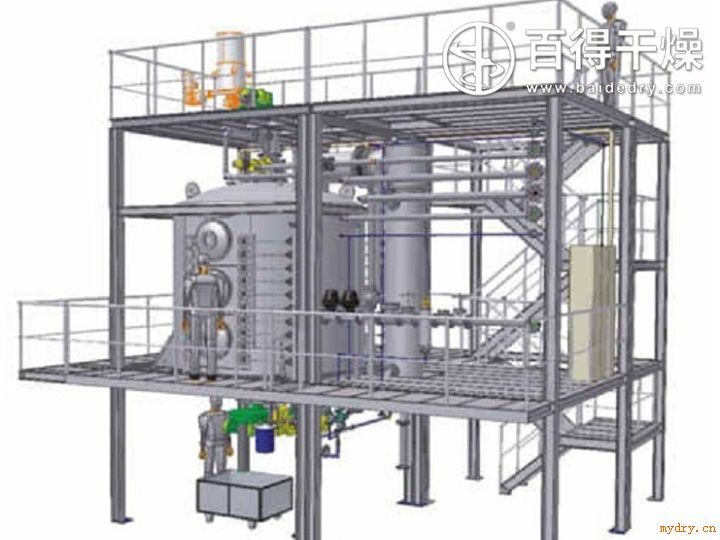 草銨膦是德國(guó)赫斯特公司(現(xiàn)屬于拜耳公司)在20世紀(jì)80年代開(kāi)發(fā)的一種具有低毒、高效、非選擇性觸殺型有機(jī)磷除草劑。草銨膦*的擁有者是德國(guó)的拜耳公司,該公司是目前全球生產(chǎn)草銨膦zui多、占有市場(chǎng)份額zui大的企業(yè),擁有先進(jìn)、成熟的生產(chǎn)草銨膦的技術(shù)。 在我國(guó),截止到2016年9月,草銨膦原藥產(chǎn)品獲批準(zhǔn)登記的公司有33個(gè)。其中利爾化學(xué)、永農(nóng)生物科學(xué)、樂(lè)山福華等極少數(shù)公司具有良好的生產(chǎn)草銨膦的裝置、設(shè)備和工藝路線(xiàn)。由于草銨膦的生產(chǎn)技術(shù)壁壘高、成本高和環(huán)保政策嚴(yán)格,一些小型企業(yè)的成本與產(chǎn)品價(jià)格倒掛,被迫停止生產(chǎn)草銨膦。 ![]() 有機(jī)磷除草劑草銨膦純化后處理干燥設(shè)備 在有機(jī)磷除草劑草銨膦生產(chǎn)中,干燥操作單元決定了農(nóng)藥原藥成品的水分含量,并且對(duì)晶體結(jié)構(gòu)有一定的影響,是一個(gè)重要工序,干燥設(shè)備能否正確選擇直接關(guān)系到產(chǎn)品的質(zhì)量、操作環(huán)境和生產(chǎn)成本。目前常用的溶劑類(lèi)除草劑干燥設(shè)備有雙錐回轉(zhuǎn)真空干燥機(jī)、耙式真空干燥機(jī)、真空盤(pán)式干燥機(jī)、單錐真空干燥機(jī)等。 (1) 雙錐回轉(zhuǎn)真空干燥機(jī) 雙錐回轉(zhuǎn)真空干燥機(jī)為雙錐形的回轉(zhuǎn)罐體,罐內(nèi)在真空狀態(tài)下,向夾套內(nèi)通入蒸汽或熱水進(jìn)行加熱,熱量通過(guò)罐體內(nèi)壁與濕物料接觸,濕物料吸熱后蒸發(fā)的水汽,通過(guò)真空泵經(jīng)真空排氣管被抽走。由于罐體內(nèi)處于真空狀態(tài),且罐體的回轉(zhuǎn)使物料不斷的上下內(nèi)外翻動(dòng),故加快了物料的干燥速度,提高干燥效率,達(dá)到均勻干燥的目的。 在應(yīng)用于溶劑類(lèi)除草劑的雙錐回轉(zhuǎn)真空干燥機(jī)的具有如下問(wèn)題:農(nóng)藥原藥得不到分散,干燥時(shí)間長(zhǎng);當(dāng)物料量大時(shí),所需的設(shè)備容較大;工人勞動(dòng)強(qiáng)度大,需定時(shí)將物料裝卸或翻動(dòng),粉塵飛揚(yáng),環(huán)境污染嚴(yán)重;熱效率低,一般在60%左右;產(chǎn)品質(zhì)量不穩(wěn)定等。 ![]() (2) 耙式真空干燥機(jī) 耙式真空干燥機(jī)主要由筒體、攪拌軸、傳動(dòng)系統(tǒng)和密封裝置等部分組成。干燥所需熱量主要由攪拌軸及筒體夾套提供。當(dāng)加熱介質(zhì)通入設(shè)備后 , 熱量通過(guò)夾套及攪拌軸對(duì)物料進(jìn)行間接加熱,濕物料中的濕分受熱汽化,汽化出的濕分被真空系統(tǒng)及時(shí)抽走。隨著攪拌軸的不斷轉(zhuǎn)動(dòng),物料與加熱面的接觸不斷更新,使物料均勻受熱,從而達(dá)到良好的干燥效果。 應(yīng)用于有機(jī)磷除草劑草銨膦的真空耙式干燥機(jī)的具有如下問(wèn)題:產(chǎn)品質(zhì)量不均勻.顏色發(fā)黃。而且極易粘壁,不能連續(xù)生產(chǎn)。其中有機(jī)溶劑甲醇為重要的反應(yīng)原料,又是易燃易爆的劇毒品,工藝上有嚴(yán)格的回收要求。 ![]() (3) 真空盤(pán)式干燥機(jī) 真空盤(pán)式干燥機(jī)適用于干燥溫度要求很低的熱敏性物料的干燥。濕物料分批加入到能耐負(fù)壓的定量加料器中,開(kāi)啟真空泵,使盤(pán)式干燥器呈負(fù)壓狀態(tài)后,通過(guò)連續(xù)閉鎖器將物料均勻加入干燥器中進(jìn)行干燥作業(yè),干燥后的物料從干燥器底部的出料口排出。從物料中逸出的濕分經(jīng)冷凝器和溶劑接受罐進(jìn)行回收,整個(gè)操作過(guò)程在負(fù)壓下進(jìn)行。 真空盤(pán)式干燥機(jī)適用于具有良好加熱條件及物料允許較長(zhǎng)時(shí)間接觸加熱的場(chǎng)合。對(duì)于可自由流動(dòng)、不黏結(jié)的、極細(xì)粉末(100目以下)及粒度分布寬的粒狀物料處理頗為合適。 ![]() (4) 單錐真空干燥機(jī) 雙錐回轉(zhuǎn)真空干燥機(jī)靠夾套加熱,物料被加熱后溫度不夠均勻,所需干燥時(shí)間較長(zhǎng),能耗高,對(duì)于熱敏性物料允許的操作溫度約為60℃的使用效果很差,常州百得研制出了改進(jìn)型的復(fù)合加熱真空螺帶干燥機(jī),特別是帶內(nèi)加熱螺帶的脈沖真空單錐干燥機(jī)。 單錐真空干燥機(jī)是一種間接加熱式干燥機(jī),其主要干燥粉體物料。在傳統(tǒng)的雙錐螺旋攪拌真空干燥器基礎(chǔ)上,將螺帶通入加熱介質(zhì)對(duì)物料進(jìn)行加熱。單錐真空干燥機(jī)的主體是為錐形筒體(干燥室),在錐形筒被的夾套包裹,夾套外部被整個(gè)保溫層包裹。在錐形筒體(干燥室)的內(nèi)部是螺帶攪拌加熱裝置,其主要有螺帶和轉(zhuǎn)動(dòng)軸組成。螺帶連接在轉(zhuǎn)動(dòng)軸上形成流動(dòng)的回路,當(dāng)轉(zhuǎn)動(dòng)軸轉(zhuǎn)動(dòng)時(shí)螺帶同步轉(zhuǎn)動(dòng)。濕物料由進(jìn)料口進(jìn)入到真空螺帶干燥機(jī)的內(nèi)部,隨著螺帶的轉(zhuǎn)動(dòng),靠近螺帶周?chē)奈锪希宦輲?dòng)提升、滾落,與加熱壁面之間進(jìn)行熱量的傳遞脫出濕份。zui后由檢測(cè)口測(cè)量物料是否符合干燥要求,再由低部的球形閥排除物料。 ![]() 有機(jī)磷除草劑草銨膦純化后處理干燥設(shè)備 性能分析 ![]() 單錐真空干燥機(jī) 技術(shù)特點(diǎn) 單錐真空干燥機(jī)因低壓、復(fù)合間接加熱及獨(d