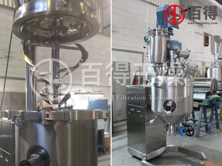 實驗室過濾洗滌干燥三合一體機 二合一過濾器 筒錐式三合一多功能過濾機 工作原理 實驗室過濾洗滌干燥一體機為筒錐式結構,在圓筒體和下部錐體上設置有加熱夾套,可對物料進行加熱或冷卻,在多功能機內部設置有空心軸和變角度變導程空心螺旋攪拌裝置攪拌,對物料進行攪拌和提升,在出料時推出物料。在下部錐體內設置有結構較為復雜的圓錐形過濾裝置,在設備底部有特殊設計的無死角快開出料裝置或無死角氣動出料球閥。 在反應階段,反應物料從頂部加入,獨特的攪拌結構可使物料在機內得到均勻的攪拌,并通過筒體夾套、錐體夾套及空心軸、空心螺旋葉的同時加熱或冷卻,使物料在機內充分反應。在過濾階段,本機可使物料在機內通過加壓或抽真空過濾濾干,并加入洗滌液,使物料在機內進行多次自動再漿洗滌,達到洗滌要求后再壓干。在干燥階段,筒體夾套、錐體夾套、空心軸、空心螺帶同時對物料進行加熱并在頂部抽真空,對物料進行真空密閉低溫干燥,干燥后自動密閉出料。 ![]() 實驗室過濾洗滌干燥三合一體機 二合一過濾器 筒錐式三合一多功能過濾機 性能特點 1、一機多用,可在一臺機內完成反應、萃取、過濾、反復多次過濾洗滌、干燥等多種操作,并直接得到成品。 2、操作彈性大,能通過調整過濾壓差、轉速、螺旋擠壓導程等調節操作周期,以適應工藝條件的變化。 3、該機可在過濾介質表面形成很薄的濾餅或者在無濾餅條件下進行過濾,單位過濾面積上的過濾速率很高,因此設備小而緊湊。 4、全封閉系統,操作環境相當好,特別適用于處理有毒、易燃、易爆的危險產品及不允許有污染的鮮美食品生物制品藥品等。 5、既能濃縮,又能過濾。特別是需要對物料進行洗滌時,可先對物料進行濃縮,并在懸浮狀態下進行徹底地洗滌,zui后再壓濾,這樣可減少物料的搬運,減少浪費,洗滌時不用再漿 ,產品質量很高。 6、可用于反應、過濾、干燥三種操作,使三個單元設備的作用在這一臺設備上完成,從而使設備成本、占地面積、勞動強度、能耗等都大大降低。 7、該機的動力消耗低,擠出濾餅一般比平板式三合一水分低,操作亦方便。 ![]() 實驗室過濾洗滌干燥三合一體機 二合一過濾器 筒錐式三合一多功能過濾機 主要技術參數 1、公稱容量:100L 2、主機內徑:600mm 3、過濾前容積:80L/批 4、物料干燥后:≤30kg/批 5、設備材質:與物料部分部分材質316L不銹鋼、其余部分材質采用S30408不銹鋼或碳鋼 6、設備拋光精度:設備內壁精密拋光≤0.4、設備外表面拋光≤0.8 7、過濾面積:0.5平方 8、加熱面積:1.1平方 9、過濾材質:采用316L不銹鋼6層燒結網 10、過濾精度:微米(150)或目數(100目) 11、主軸攪拌形式:特殊空心螺帶攪拌軸 12、主軸機械密封:雙端面機械密封 13、平底無死角出料球閥:DN150 14、傳動電機:防爆電機4KW 、防爆等級dllBT4 IP55 15、減速機:FAF87 16、主軸轉速:0~29rpm ![]() ![]() |