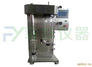 一、干燥機(jī)原理 供應(yīng)噴霧干燥機(jī)采用菜單式微處理控制器,可以直接設(shè)置進(jìn)口溫度、氣流量、自動通針頻率、蠕動泵速,實現(xiàn)數(shù)據(jù)采集以及過程監(jiān)控和控制。自吸蠕動泵將樣品液體從容器中通過噴嘴進(jìn)入干燥腔,同時壓縮空氣從外層套管進(jìn)入干燥腔使液體微粒化,熱空氣從上層進(jìn)入與噴霧后的液體微粒相遇,物品開始干燥,干燥后的粉粒通過旋風(fēng)分離器與廢氣分離后進(jìn)入收集瓶中,廢氣則通過直徑軟管直接排到大氣或空氣過濾裝置