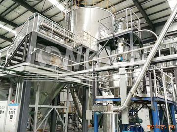 (1) 閉路循環(huán)離心噴霧干燥機(jī)采用氮?dú)鉃閭鲗?dǎo)傳熱介質(zhì),并以氮?dú)鉃檩d體,在密閉的狀態(tài)下,實(shí)現(xiàn)閉路循環(huán),有效地達(dá)到對(duì)含有機(jī)溶劑液態(tài)物料干燥的安全性,和對(duì)易氧化濕物料在干燥生產(chǎn)工藝過(guò)程中得到抗氧化性的保護(hù)。 (2) 本機(jī)組采用新型的噴霧干燥技術(shù),以致實(shí)現(xiàn)傳統(tǒng)離心噴霧干燥無(wú)法比擬的對(duì)高固含量,且具備粘狀、稠狀液態(tài)物料氮?dú)鈩?dòng)力霧化,以致提高生產(chǎn)能力與減少能源消耗70%以上,達(dá)到顯著的節(jié)能高產(chǎn)的生產(chǎn)效果。 (3) 本機(jī)組采用在線監(jiān)測(cè)與自診斷控制功能,確保對(duì)含有機(jī)溶媒液態(tài)物料干燥的安全生產(chǎn),智能化控制系統(tǒng)自動(dòng)化程度高。 (4) 本機(jī)組實(shí)現(xiàn)對(duì)含有機(jī)溶媒物料在干燥生產(chǎn)工藝過(guò)程的回收利用,在解決相關(guān)行業(yè)在干燥難與廢氣排放污染重的基礎(chǔ)上,實(shí)現(xiàn)溶劑回收利用,獲得節(jié)能減排的實(shí)用性效果。 閉路循環(huán)離心噴霧干燥機(jī)是有機(jī)溶劑類料漿干燥的專用設(shè)備。該機(jī)組是由氮?dú)猓ɑ蚱渌栊詺怏w)作為干燥循環(huán)氣體,干燥過(guò)程物料可以防止氧化、同時(shí)有機(jī)溶劑可以回收。閉式循環(huán)噴霧干燥機(jī)一般用于乙醇、丙酮、己烷等有機(jī)溶劑類制備料漿的粉體干燥,設(shè)備采用防爆設(shè)計(jì),干燥過(guò)過(guò)程產(chǎn)品無(wú)氧化,介質(zhì)可回收,惰性氣體(或氮?dú)?可循環(huán)利用。 (1) 上料系統(tǒng) 上料系統(tǒng)由攪拌槽、隔膜泵、噴槍組成。硬質(zhì)合金干粉球磨制所需顆粒后兌入一定比例的有機(jī)溶劑與成型劑,再次通過(guò)球磨機(jī)球磨,是粉末、溶劑與成型劑充分混合,變?yōu)橐环N懸浮狀態(tài)的流動(dòng)性較好的液體;液體進(jìn)入中低速攪拌機(jī)連續(xù)攪拌不讓其沉淀,然后由柱式隔膜泵(上料泵)供料到噴槍進(jìn)行噴霧。攪拌槽采用先進(jìn)的設(shè)計(jì)方案,使料漿上下翻騰不沉淀,系統(tǒng)中設(shè)置攪拌槽二臺(tái),二槽用管閥連接,待一臺(tái)上料輸送完成后,切換閥門開關(guān)與另一臺(tái)槽連通,使其保證連續(xù)供料。 攪拌槽內(nèi)的漿料由隔膜泵自吸至泵內(nèi),隔膜泵上安置調(diào)壓裝置,可視物料所需要壓力任意調(diào)節(jié)泵壓,即可根據(jù)不同的物料特性,選擇zui佳的壓力恒定值作為生產(chǎn)中的壓力指標(biāo)。 (2) 干燥機(jī)主體 防爆型噴霧干燥機(jī)主機(jī)主要由干燥塔、錐底、振打器等組成,按產(chǎn)量設(shè)定霧化半徑、停留時(shí)間與處理風(fēng)量。為避免外界環(huán)境空氣帶入塔內(nèi),以減少隱患,本塔采用微正壓操作。振打器采用PLC程序控制,間隔振打干燥塔筒壁,是靜電或其它原因吸附在塔壁上的干粉振動(dòng)落下,減少吸附,便于連續(xù)生產(chǎn)。 干燥塔上部是熱風(fēng)入塔口,裝有熱風(fēng)分布器,熱空氣通過(guò)熱風(fēng)分布器均勻地分布開來(lái),與霧滴進(jìn)行均勻有效的熱交換,使霧滴干燥成為干粉產(chǎn)品,溶劑則由循環(huán)引風(fēng)機(jī)引送至溶劑回收系統(tǒng)。 (3) 收集系統(tǒng) 由旋風(fēng)分離器、雙層翻板閥、冷卻振動(dòng)臺(tái)組成。主要收料是靠干燥塔錐底的雙層翻板閥。翻板閥由上下兩層組成,當(dāng)下翻板開啟下料時(shí),上翻板自動(dòng)關(guān)閉密封,使外界空氣進(jìn)不去,而上翻板開啟時(shí),下翻板自動(dòng)關(guān)閉密封,這樣的有序循環(huán)進(jìn)行,在隔斷外界空氣的情況下,保持連續(xù)正常生產(chǎn)。輔助收料是旋風(fēng)分離器,有少量干粉通過(guò)旋風(fēng)分離器收集;冷卻振動(dòng)臺(tái)是專門冷卻成品干粉的一種裝置,由于成型劑熔點(diǎn)低,干燥塔出口時(shí)溫度還較高,物料仍處于軟化狀態(tài),通過(guò)該配置后,物料得到充分冷卻,滿足了包裝質(zhì)量要求。 (4) 回收裝置 在生產(chǎn)中,溶劑回收很重要,回收越好,生產(chǎn)成本越低,效益就越好。本系統(tǒng)配置冷凍噴淋回收裝置,經(jīng)冷凍機(jī)冷卻后的冷己烷在噴淋塔內(nèi)不斷的循環(huán)噴淋,將系統(tǒng)循環(huán)氣體中的己烷冷卻回收下來(lái)。 (5) 循環(huán)風(fēng)機(jī)與管路系統(tǒng) 循環(huán)風(fēng)機(jī)是本系統(tǒng)的主要配置件,必須保證在密閉狀態(tài)下運(yùn)行并執(zhí)行送風(fēng)與引風(fēng)任務(wù),風(fēng)機(jī)上均裝有密封裝置,外界環(huán)境空氣不會(huì)入內(nèi)。 送風(fēng)管道與引風(fēng)管道采用快開式連接夾箍,接觸部采用軟聚四氟乙烯(耐高溫)作墊料,拆卸既方便,又能確保不漏風(fēng)。 (6) 在線氧氣濃度分析儀 分析儀主要顯示干燥塔內(nèi)氧氣濃度情況,一般情況下,塔內(nèi)氧氣濃度設(shè)定并控制在0.5%~3%范圍,如一旦超出了設(shè)定值即能自動(dòng)補(bǔ)氮,使氧氣濃度始終保持在設(shè)定的范圍內(nèi),另外,當(dāng)塔內(nèi)壓力超過(guò)設(shè)定值時(shí),塔體控制閥會(huì)自動(dòng)打開,壓力達(dá)到設(shè)定值后自動(dòng)關(guān)閉,本儀器表采用自動(dòng)化編程連鎖模式,可以確保本系統(tǒng)萬(wàn)無(wú)一失。 (7) 加熱系統(tǒng) 防爆型噴霧干燥機(jī)加熱采用導(dǎo)熱油爐—